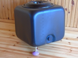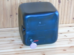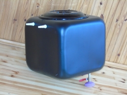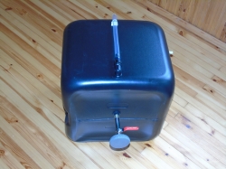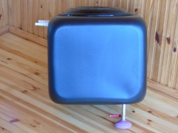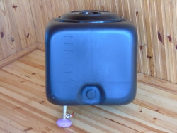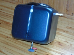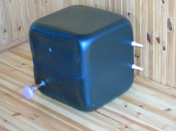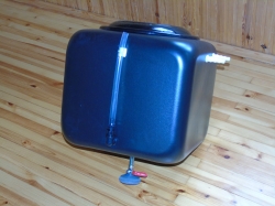 В комплект входит: металлический шаровой кран и лейка, уровнь воды со шкалой, штуцера для подключения шланга и перелива воды. Вода заливается в бак двумя способами: через заливное отверстие сверху (снимается крышка) или через заливной штуцер сбоку ( подсоединяется шланг с водопроводной водой).