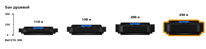 Бак для душа, объемом 250 литров, изготовлен из высококачественного полиэтилена, не подверженного коррозии и воздействию УФ лучей.