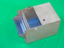 Изготовлен из влагостойкой фанеры. Кормушка и поддон из оцинкованной стали. Размеры: 45 х 29 х 26,5 см