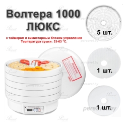 Электросушилка бытовая ЭСБ ВОЛТЕРА 1000 ЛЮКС с таймером и электронным блоком управления предназначена для сушки фруктов, овощей, ягод, грибов, пастилы, лекарственных растений и других продуктов растительного происхождения. Электросушилка может быть также использованна для сушки (вяленья) мяса и рыбы.