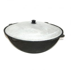 Казан чугунный узбекский 16 л. плоское дно, с аллюминевой крышкой