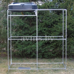 Габариты кабины в сборе без бачка: 96х190х230 смКаркас душа изготовлен из профильной оцинкованной трубы сечением 20х20 мм