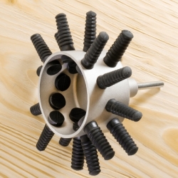 Комплект упакован в фирменную коробку и включает: ротор из алюминиевого сплава, 16 сменных пальцев изготовленных из специального вида каучука обеспечивающего наилучшее удаление пера с дичи, адаптер для установки в дрель или шуруповерт.