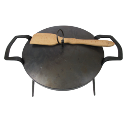 Сковорода имеет уникальную конструкцию, бортики невысокие, в комплекте может быть крышка, а съемные ножки облегчают транспортировку и позволяют жарить на мангале.